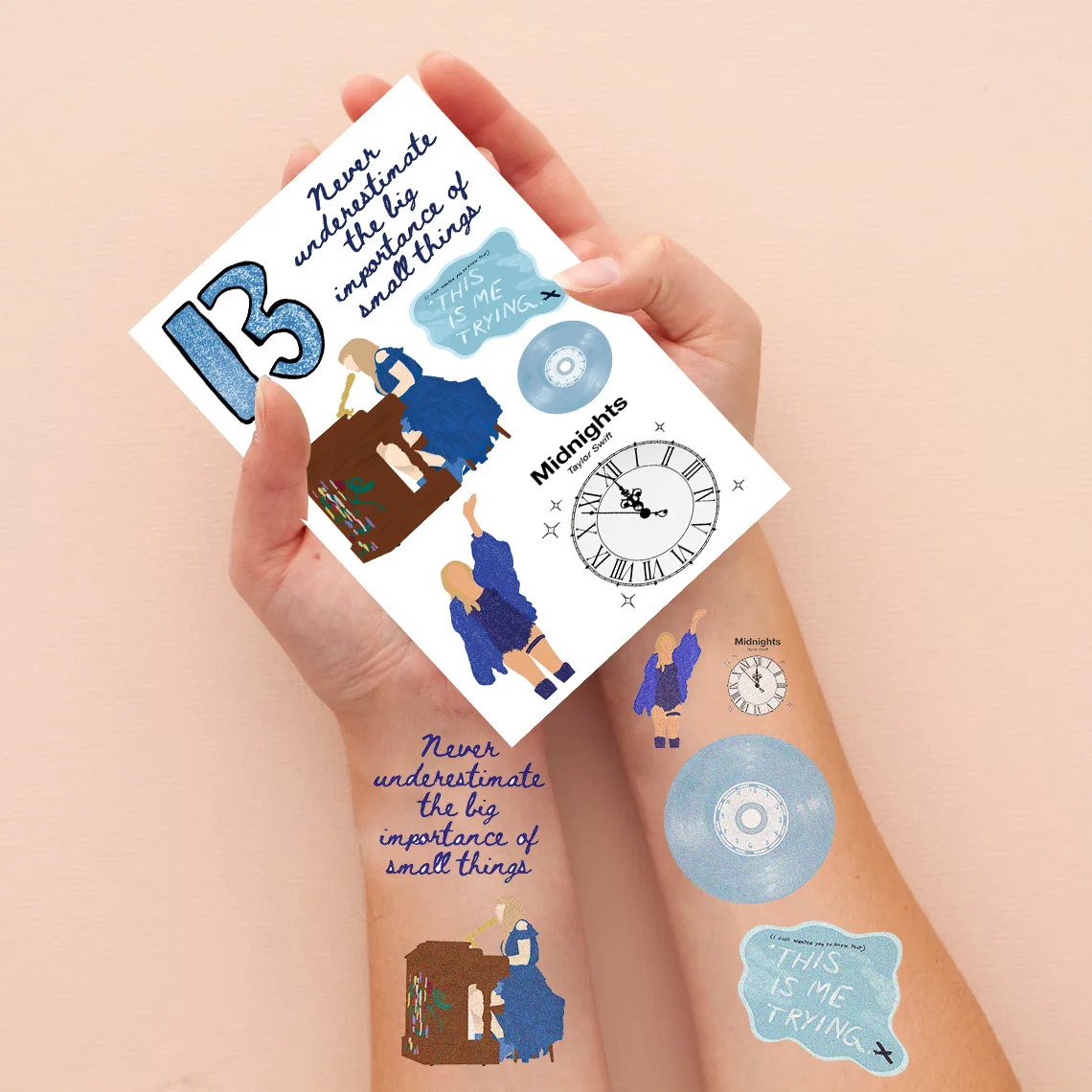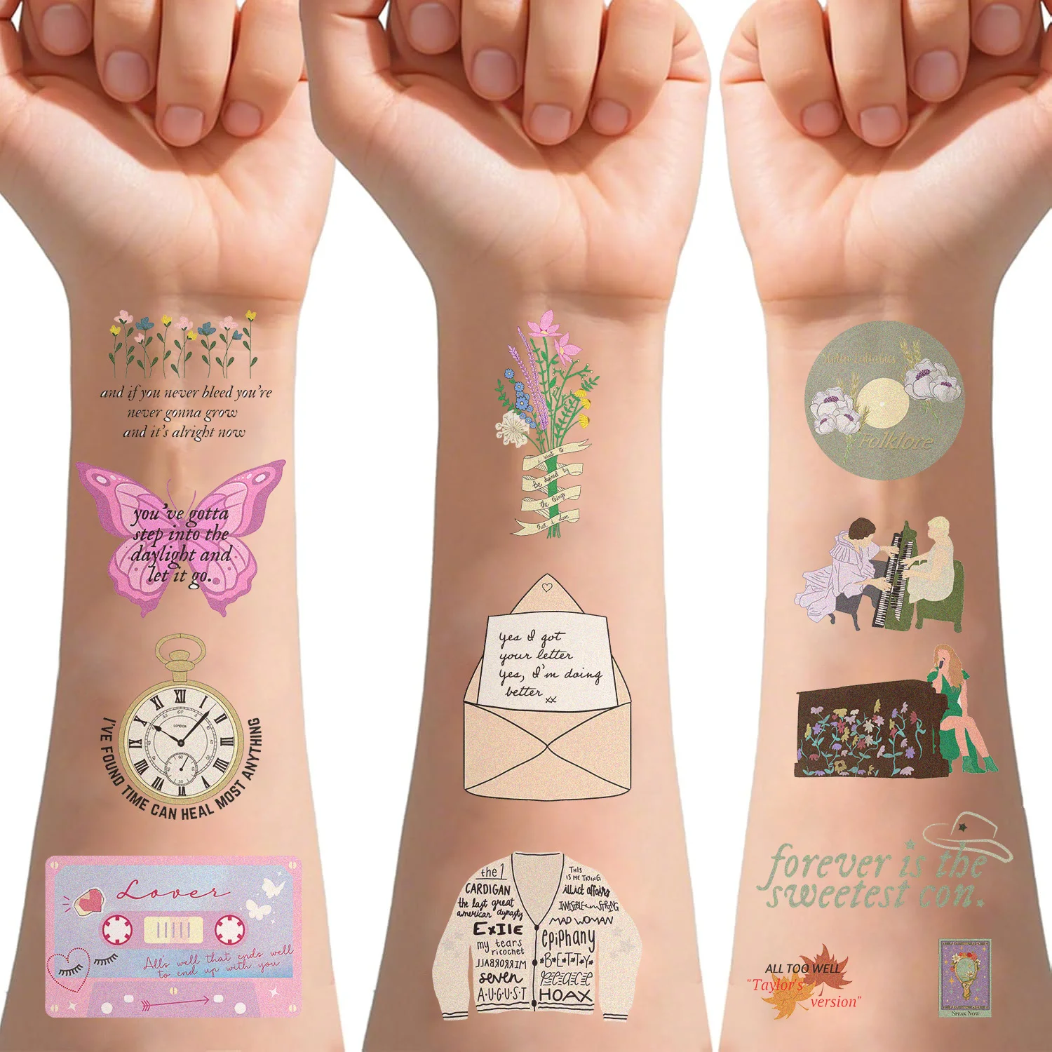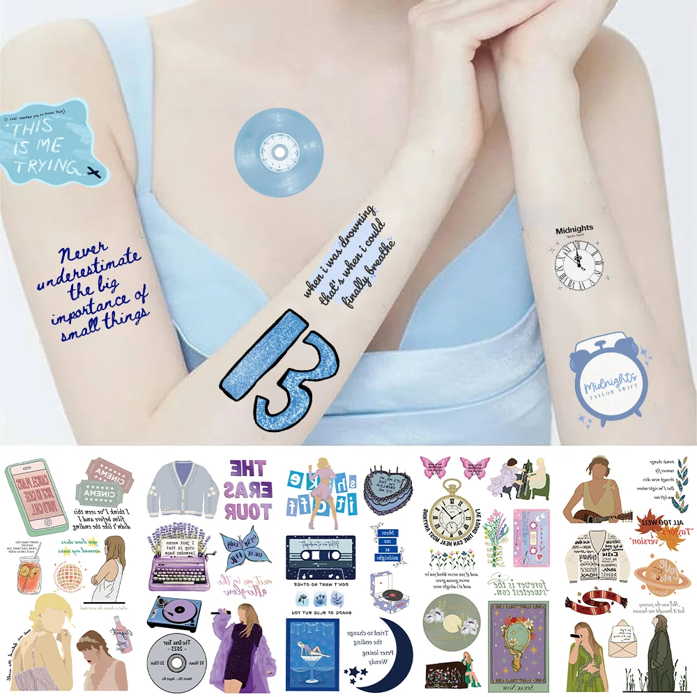 10 Sheets Taylor Mold Tattoo Stickers Painted Text Record Pattern Singer Support Waterproof Temporary Tattoo Stickers