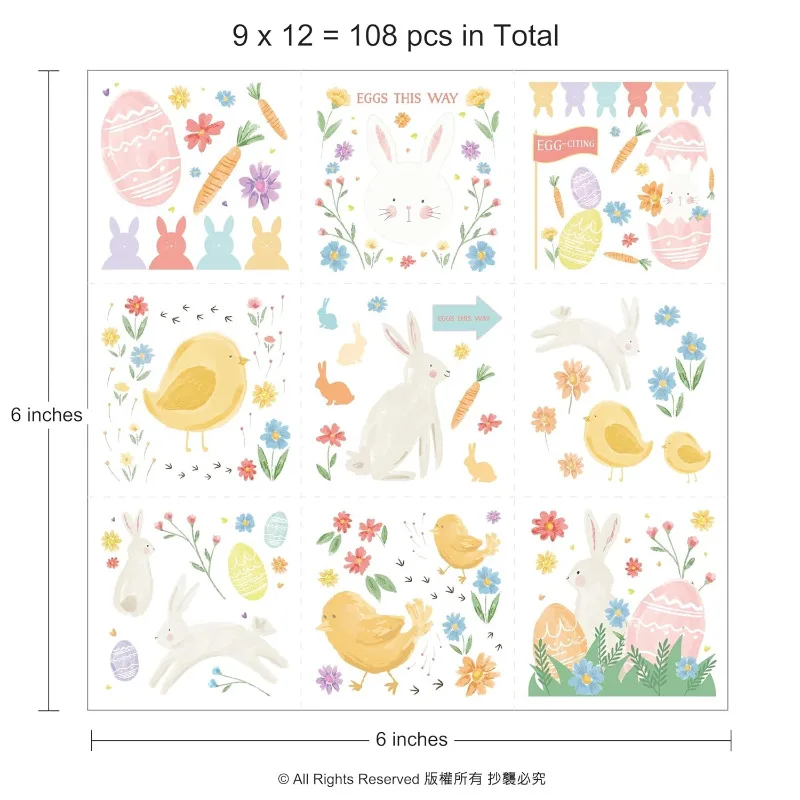 108pcs Easter Temporary Water Resistant Tattoos Cute Bunny and Chick Pastels Body Sticker for Kids Spring Party Favor Supplies