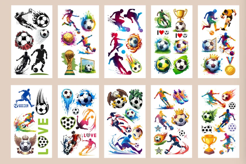 10Pcs/set Temporary Tattoo Sports Football Stickers Cartoon Soccer Fan Tattoos Stickers Sleeves Waterproof Man Kid Gift