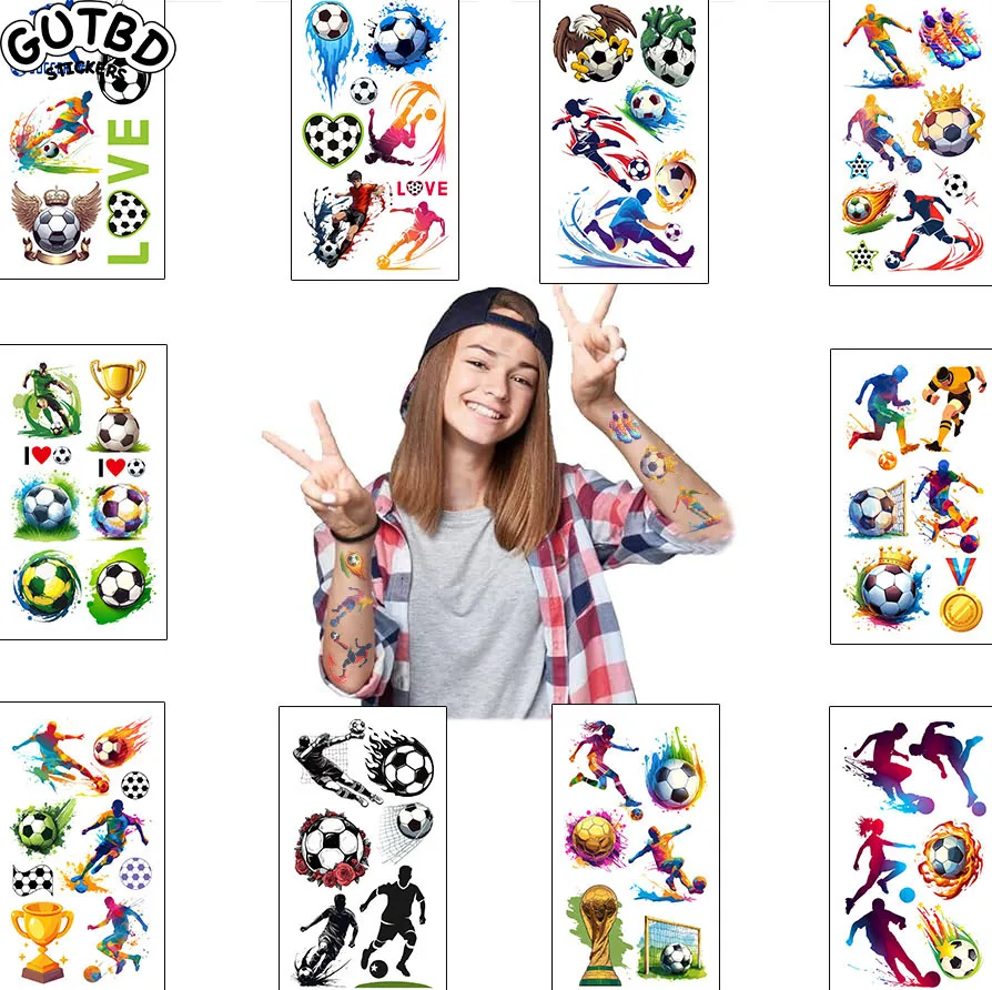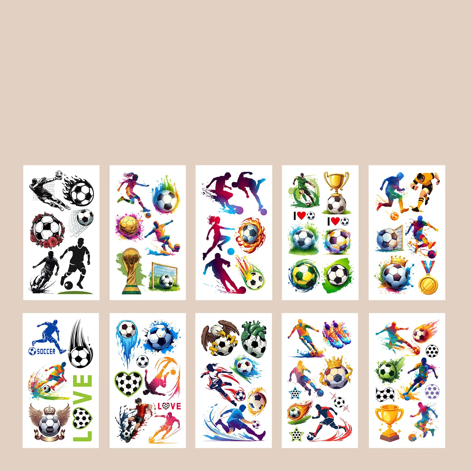 10Sheets Football Soccer Temporary Tattoos Makeup Body Stickers for Boys Sports Designs Fun Birthday Party Decorations
