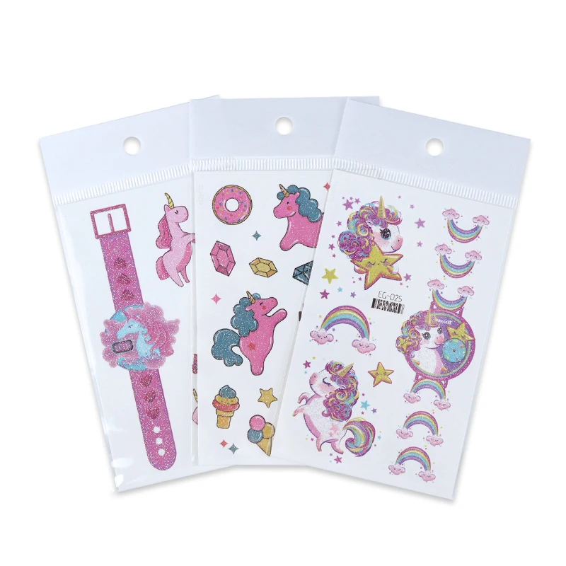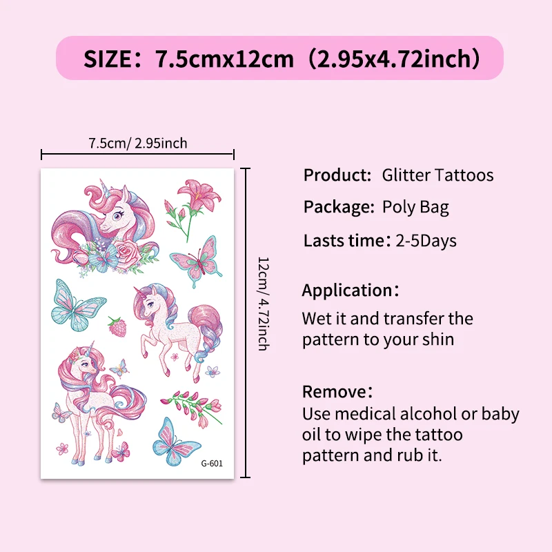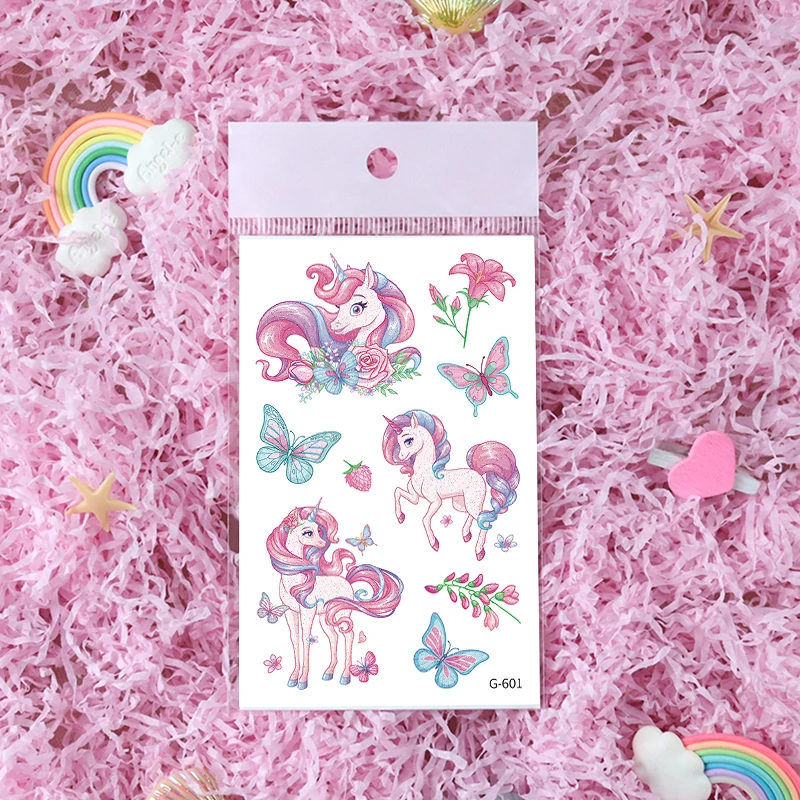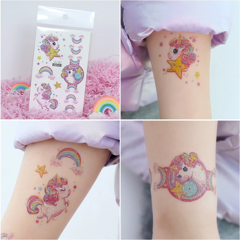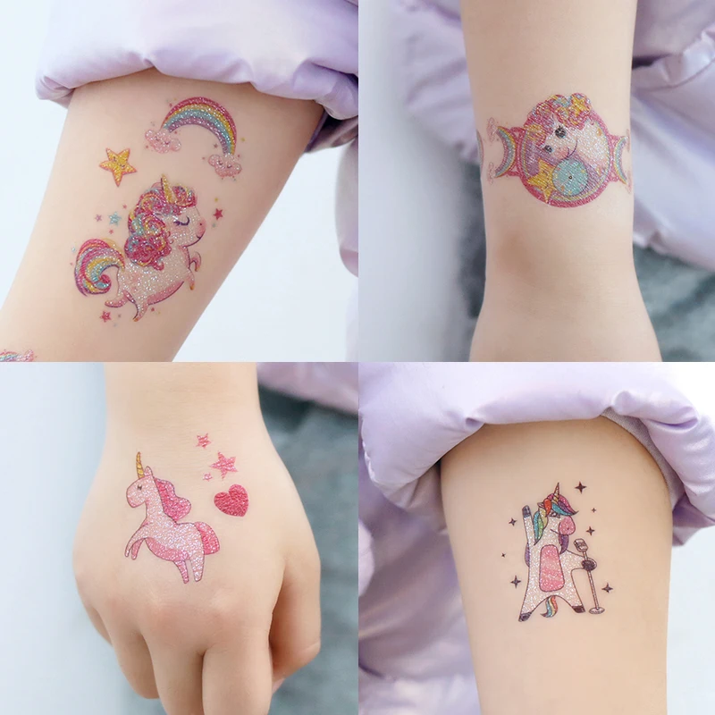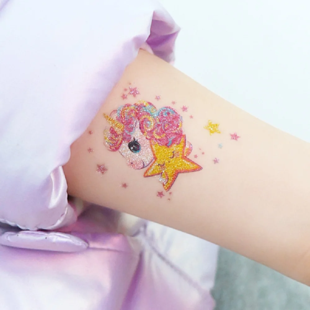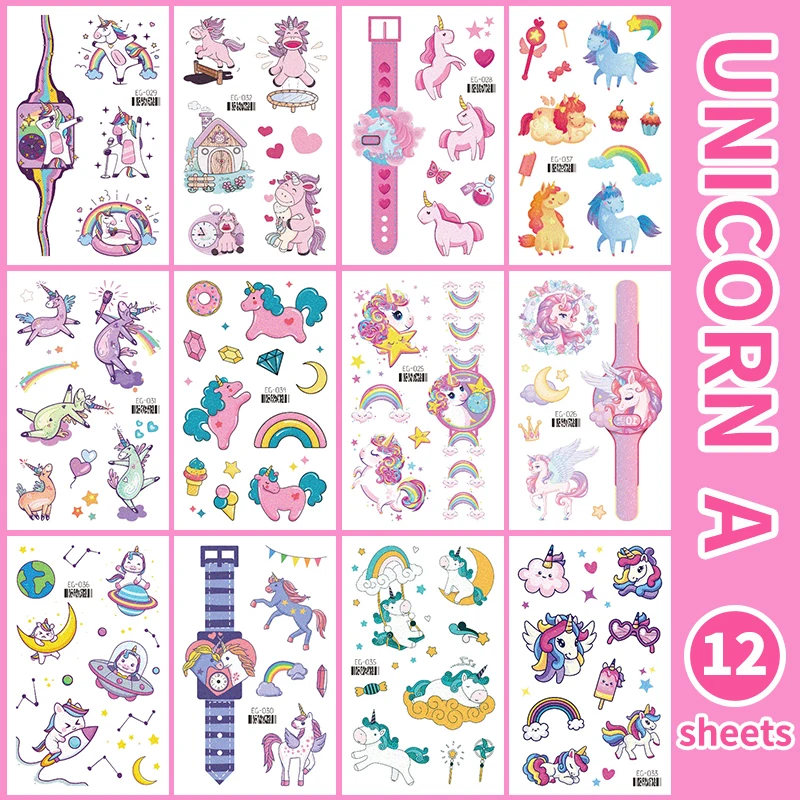 12 Sheets Glitter Cute Unicorn Temporary Tattoos, Glitter Styles Waterpro of Tattoos Stickers For Birthday Party Supplies