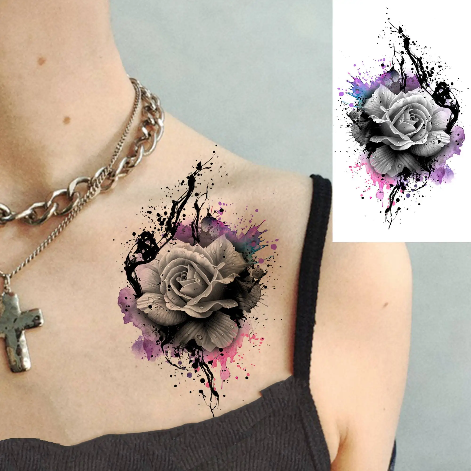10 PCS Temporary Tattoo Black Double Rose Tattoo Sticker Fake Body Art Sticker Waterproof Ladies Men