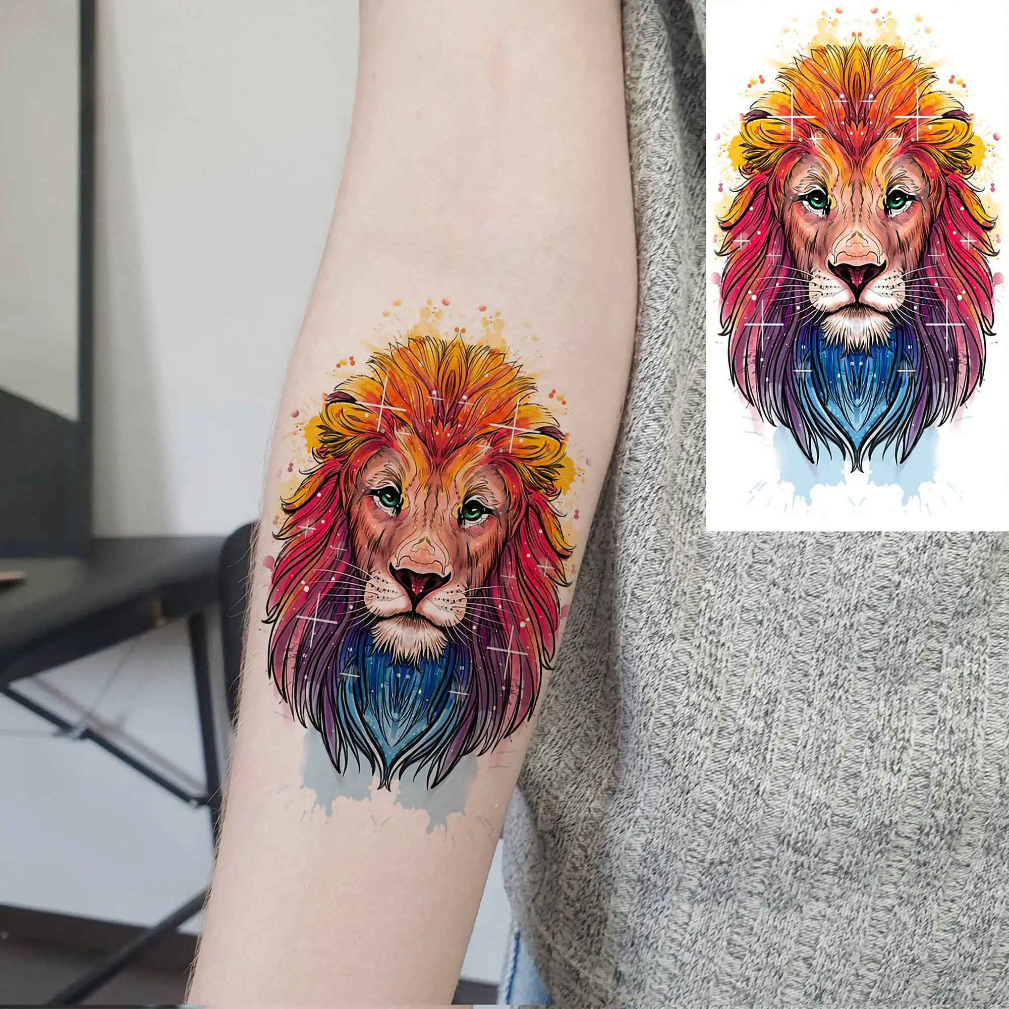 15 Sheets Watercolor Animals Temporary Tattoos For Women Men Adults Arm Neck, 3D Waterproof Fake Lion Wolf Tiger Tattoo Sticker