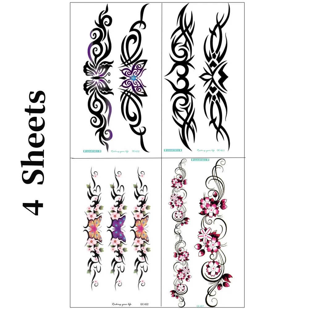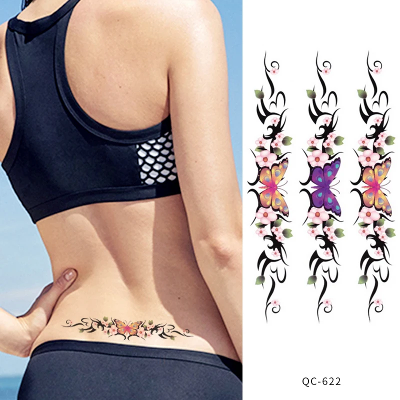 4 Sheets Hot Sale Butterfly Flower Temporary Tattoos Waist Body Fake Tattoo Stickers Leg Belly Waterproof Fake Scars Tattoos
