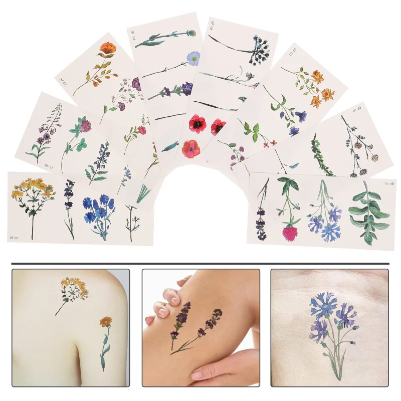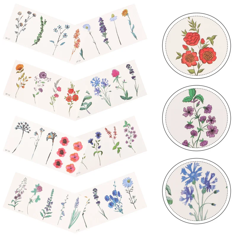 8 Sheets Your Plant Flower Temporary Tattoos Sticker Body Stickers Plants