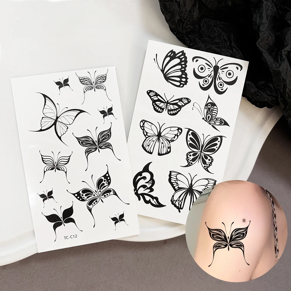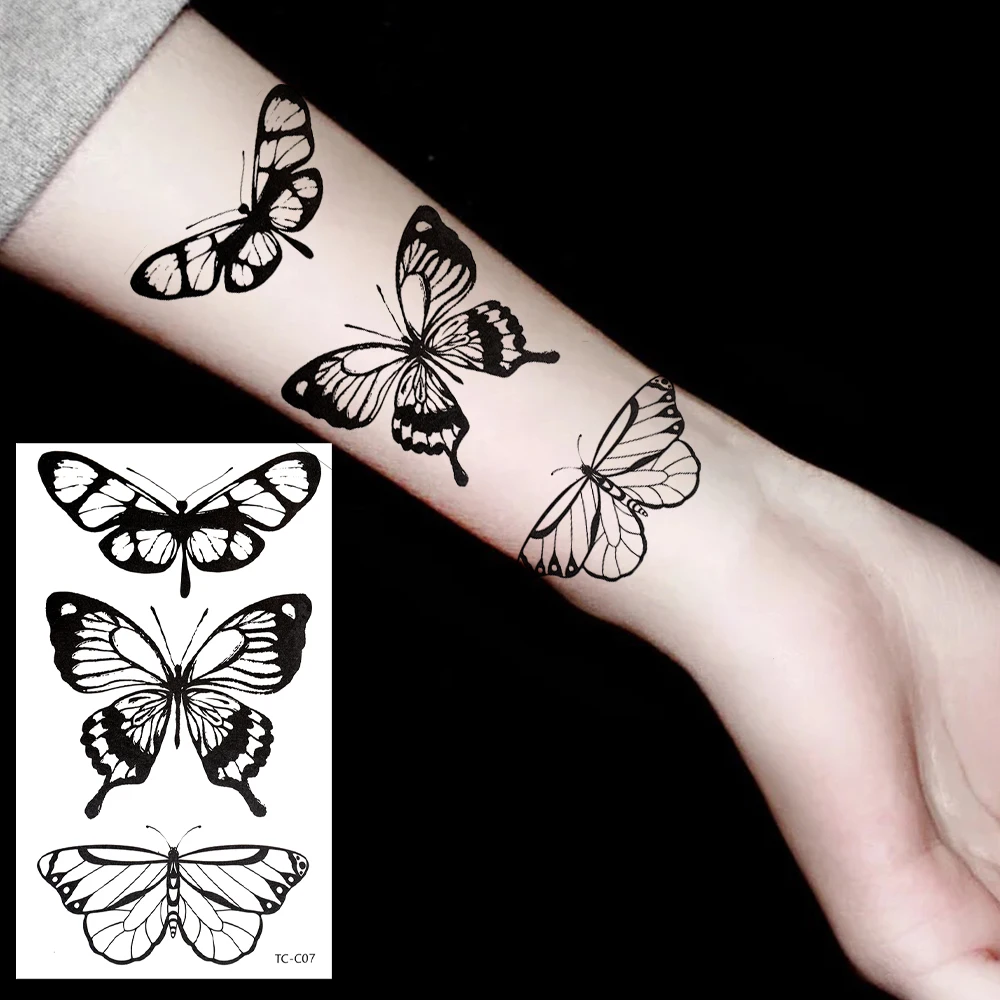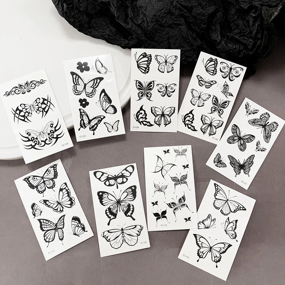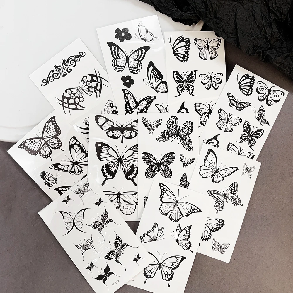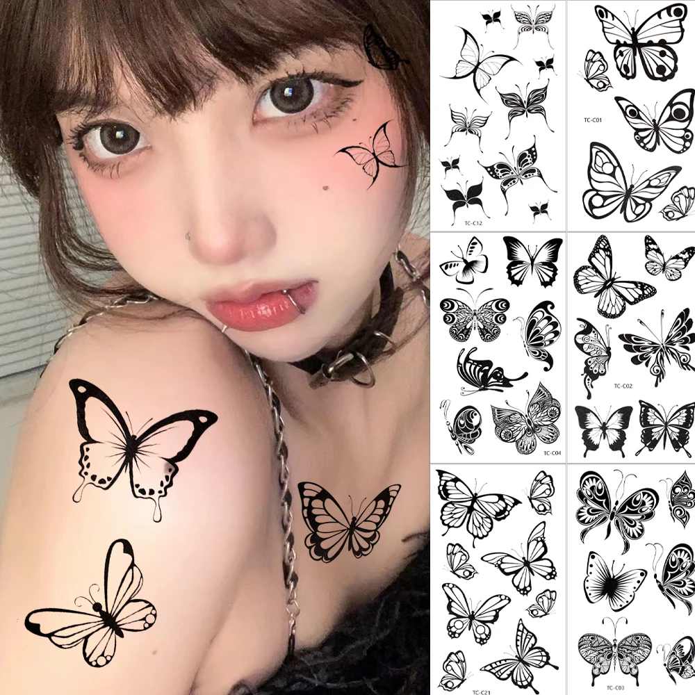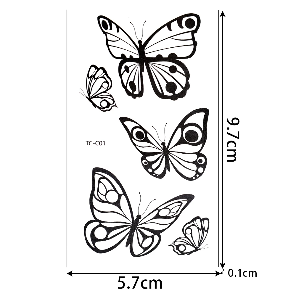 Black Butterfly Temporary Tattoo Sticker 30PCS/set 3D Butterfly Fake Tattoo Transfer Waterproof Tattoo Legs Arm Body for Women