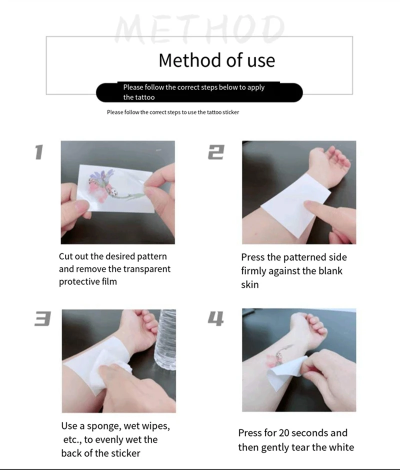 2.Printed designed patterns, color bright and looks like real tattoo.