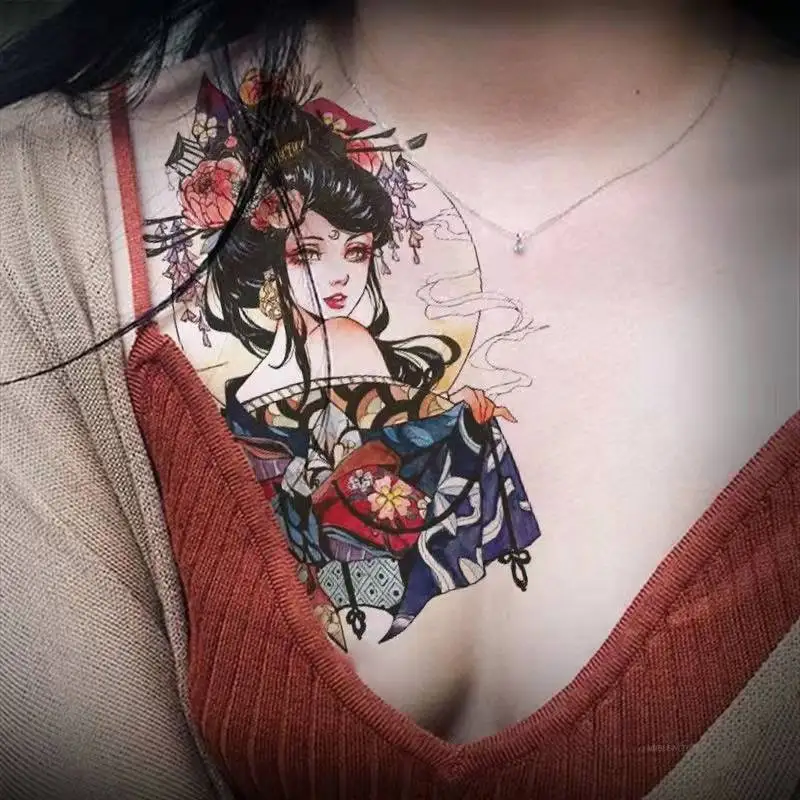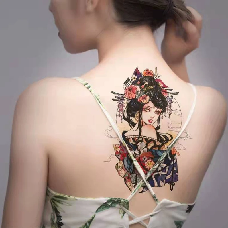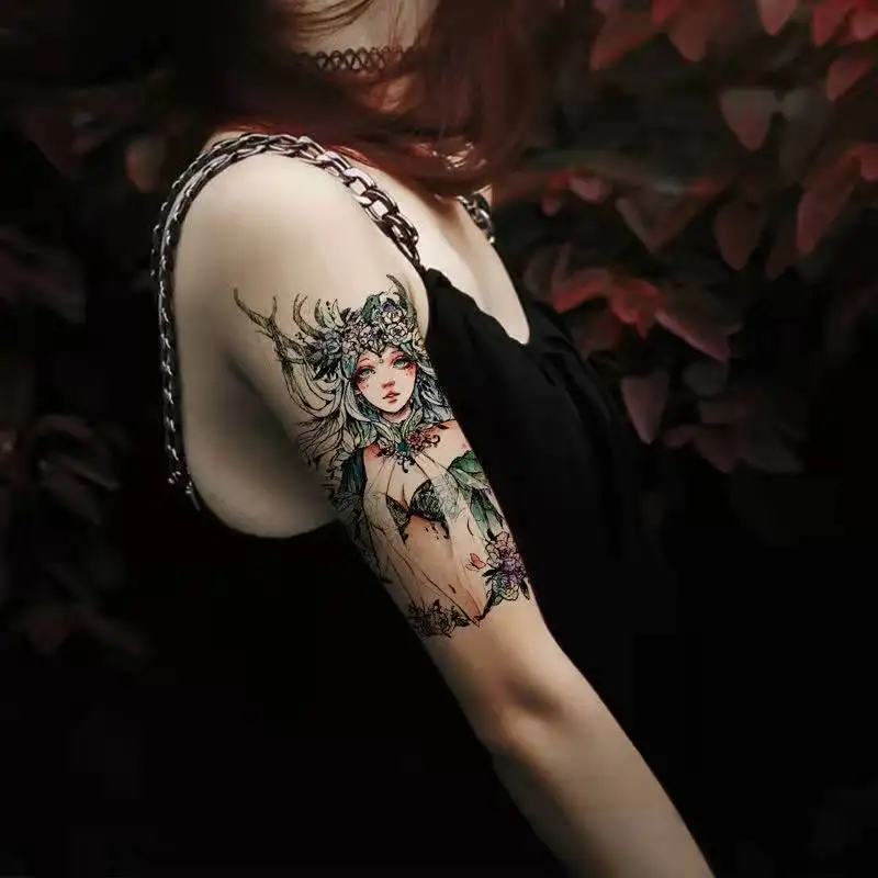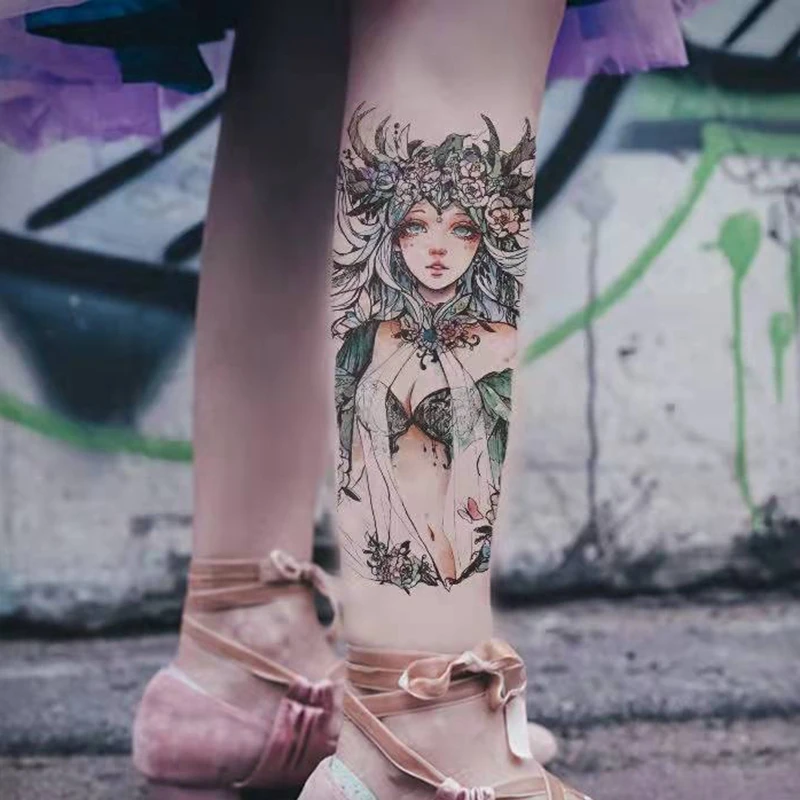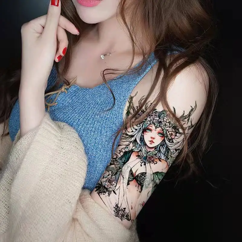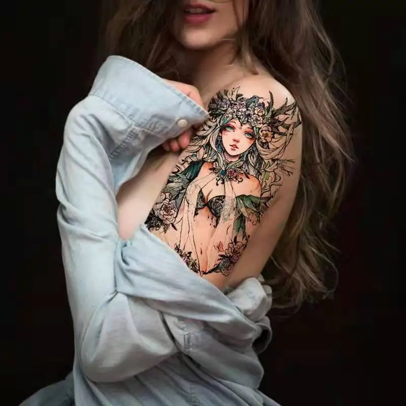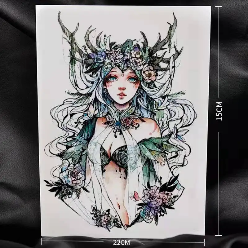 Cartoon Abatis Girl Temporary Tattoo Sticker Waterproof Butterfly Cute Clavicle Chest Flower Arm Art Fake Tattoo Leg Back Tattoo