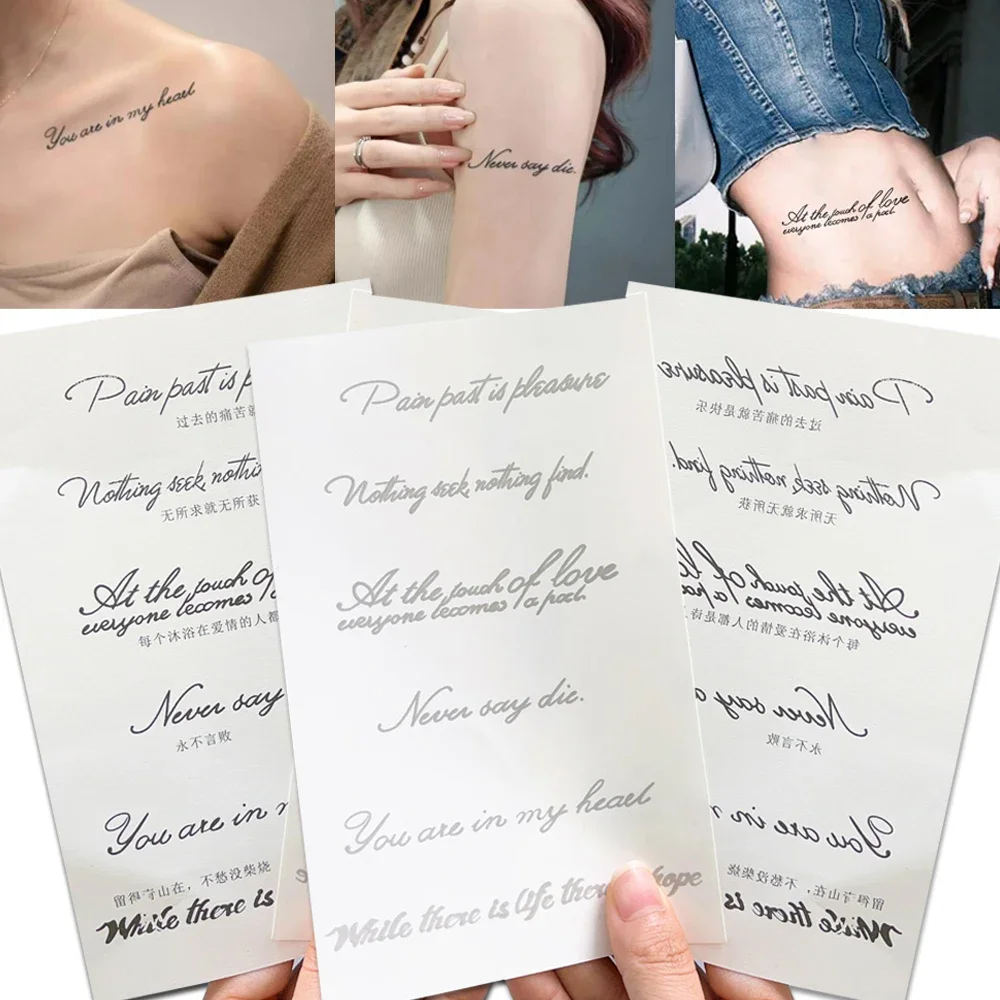 English Short Sentences Temporary Tattoo Waterproof Realistic Fake Tattoos for Men and Women Hands Leg Wrist Body Tattoos Patch