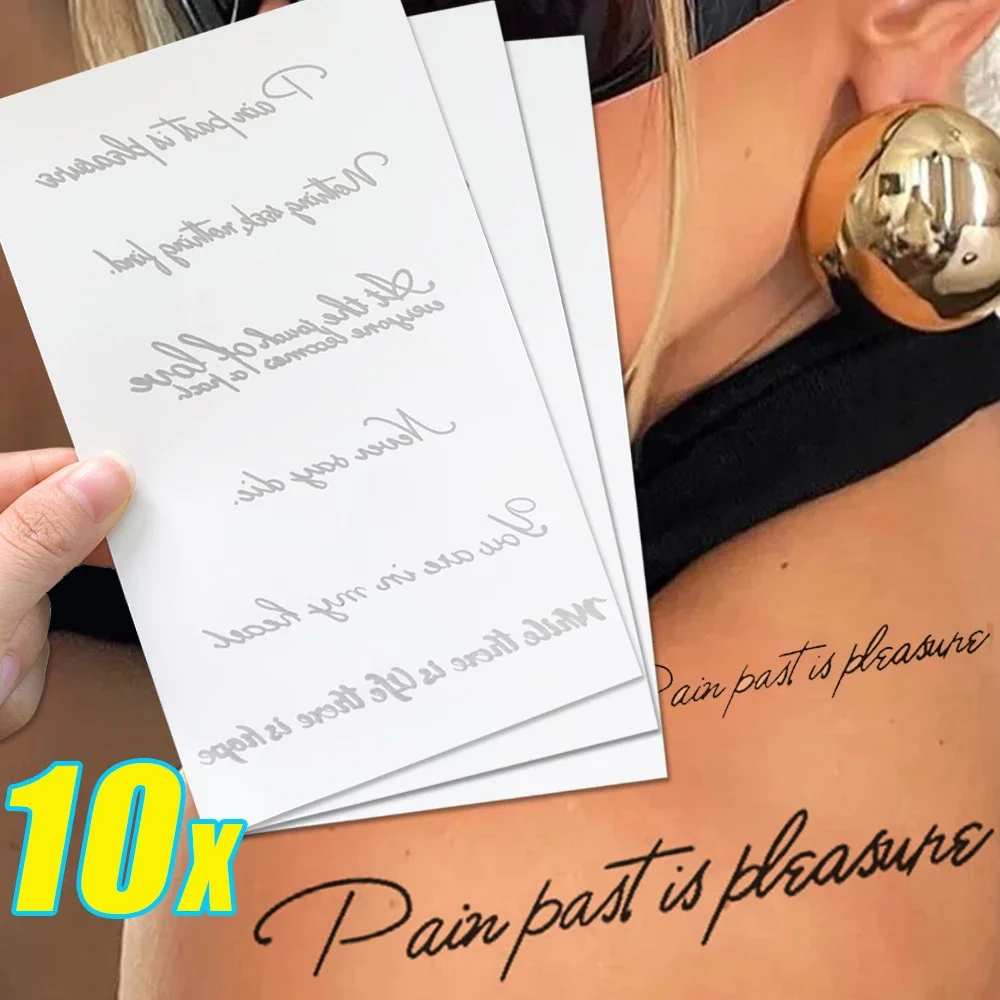 10 Sheets English Letter Temporary Tattoos for Women Men Waterproof Tattoo Sticker for Hand Finger Body Disposable Fake Tattoo