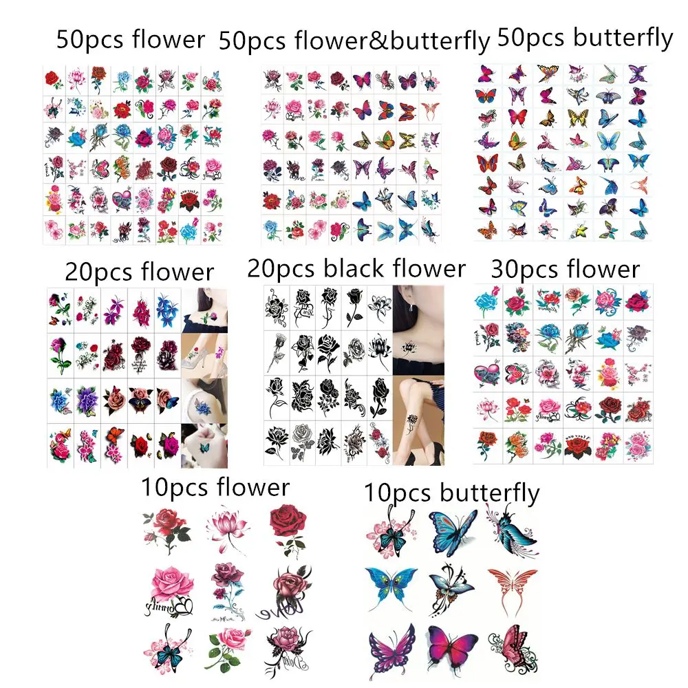 Fashion Butterfly Flower Temporary Tattoo Sticker Water Transfer Paper Decals Mental Women Removable Waterproof Body Art Sticker
