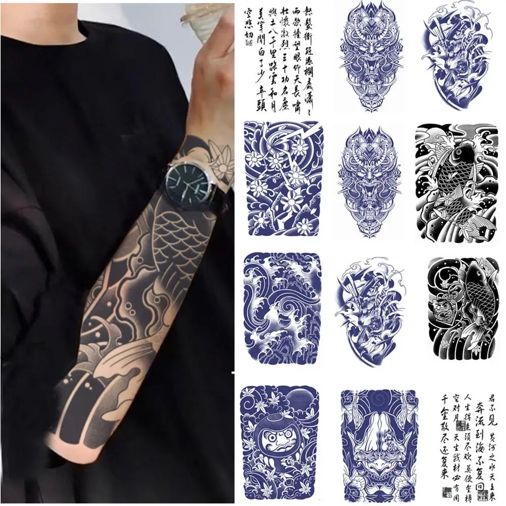 NEW Waterproof Temporary Tattoo Sticker Semi-permanent Non-reflective Old Traditional Blossom Arm Koi Fish Fake Tatoo Mal