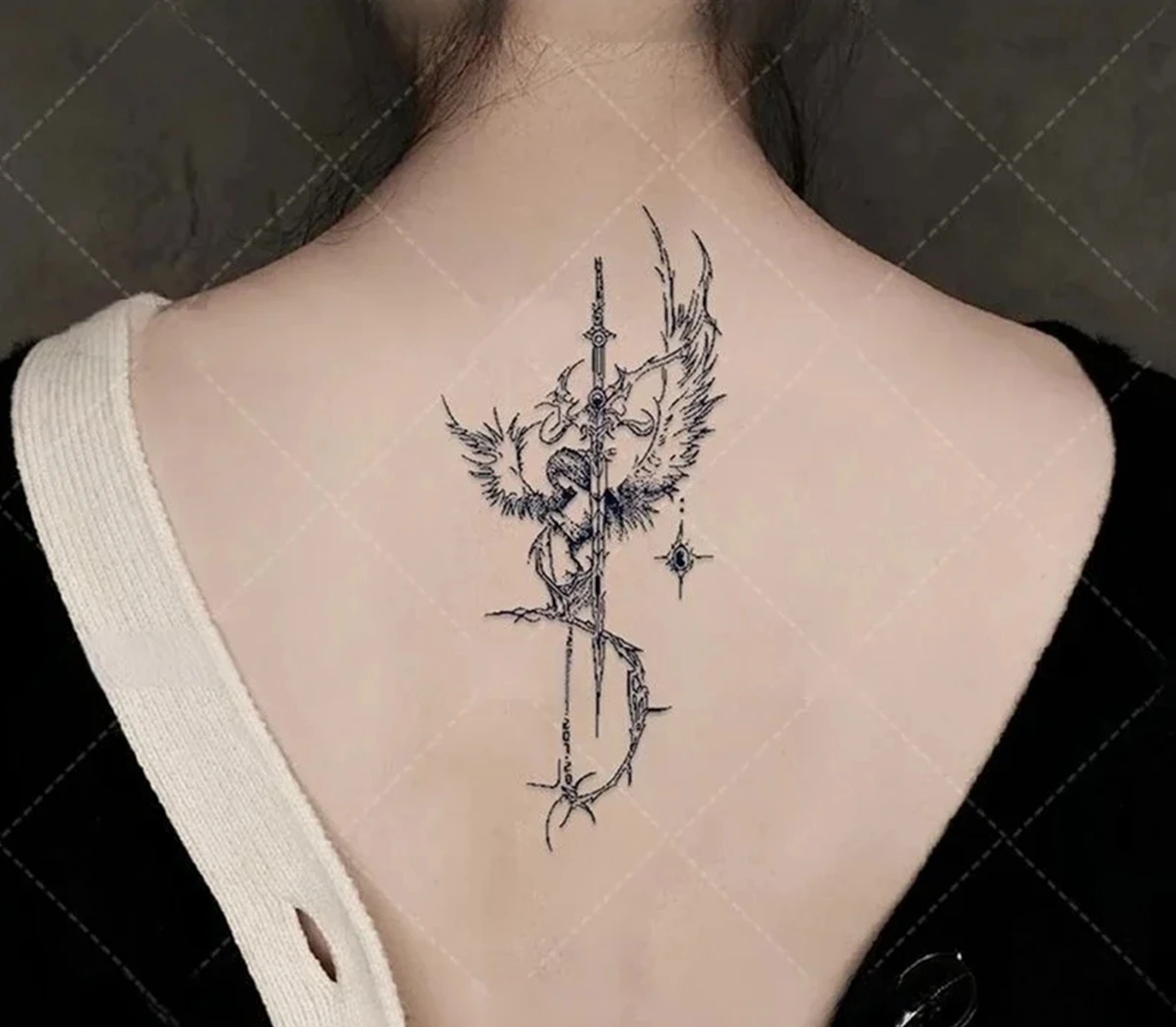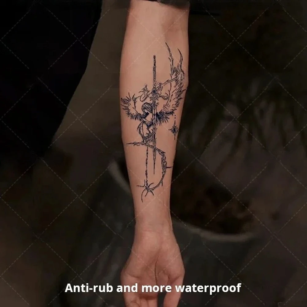Saint Trial Sword Herbal Tattoo Sticker Angel Judge Semi Permanent Waist Fake Tattoo for Woman Man Punk Art Temporary Tattoos