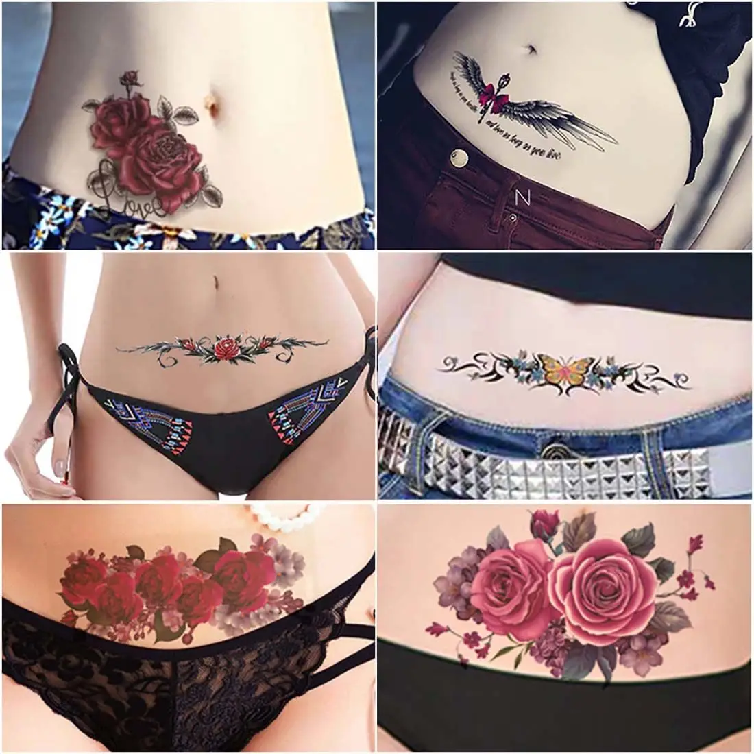 Sexy Removable Leg Body Art Waterproof Cover Scars Temporary Decal 3D Body Tattoo Sticker Black Rose Butterfly Design
