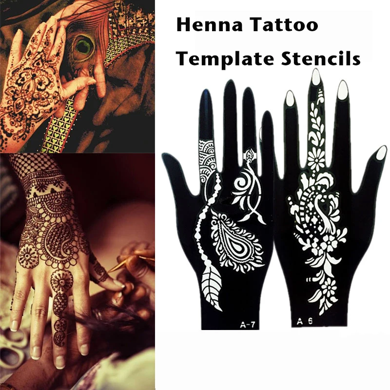 Temporary Tattoo Hollow Henna Palm Tattoo Stencil Professional Wedding Tool Hand Foot Body Art Sticker Tattoo Stencil Template