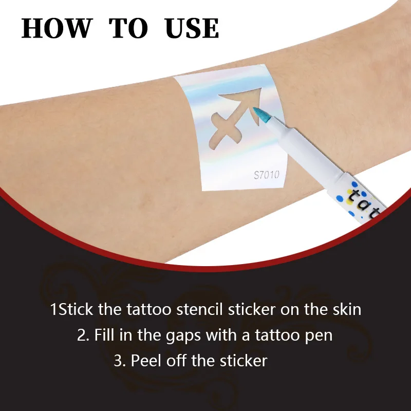 ●【Waterproof and Easy to Use】: Apply the peel off tattoo stencil to your skin, fill it with your favourite tattoo pen, wait for the ink to dry quickly and it is waterproof, peel-off the reusable stencil and add intricate details with the fine-tip ends.