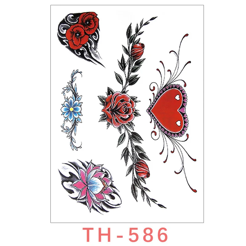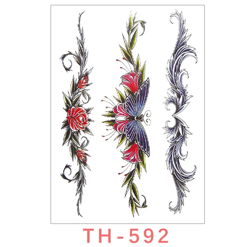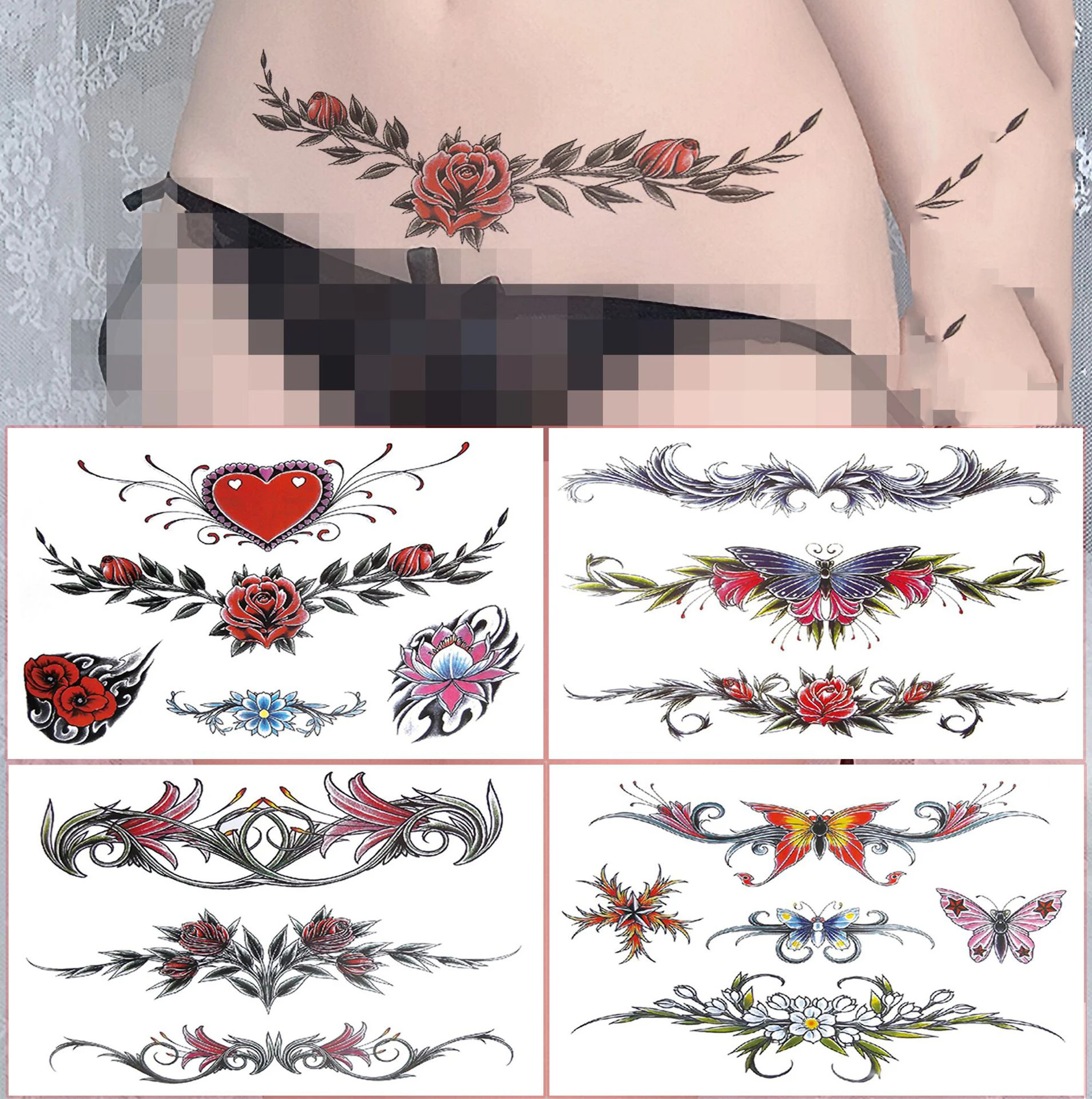 Temporary Tattoo Sticker Sexy Rose Heart-shaped Butterfly Wreath Fake Tattoo Waterproof Tattoo Back Leg Arm Belly for Women Girl