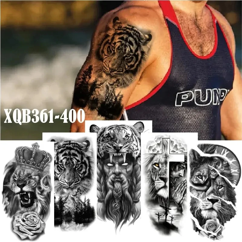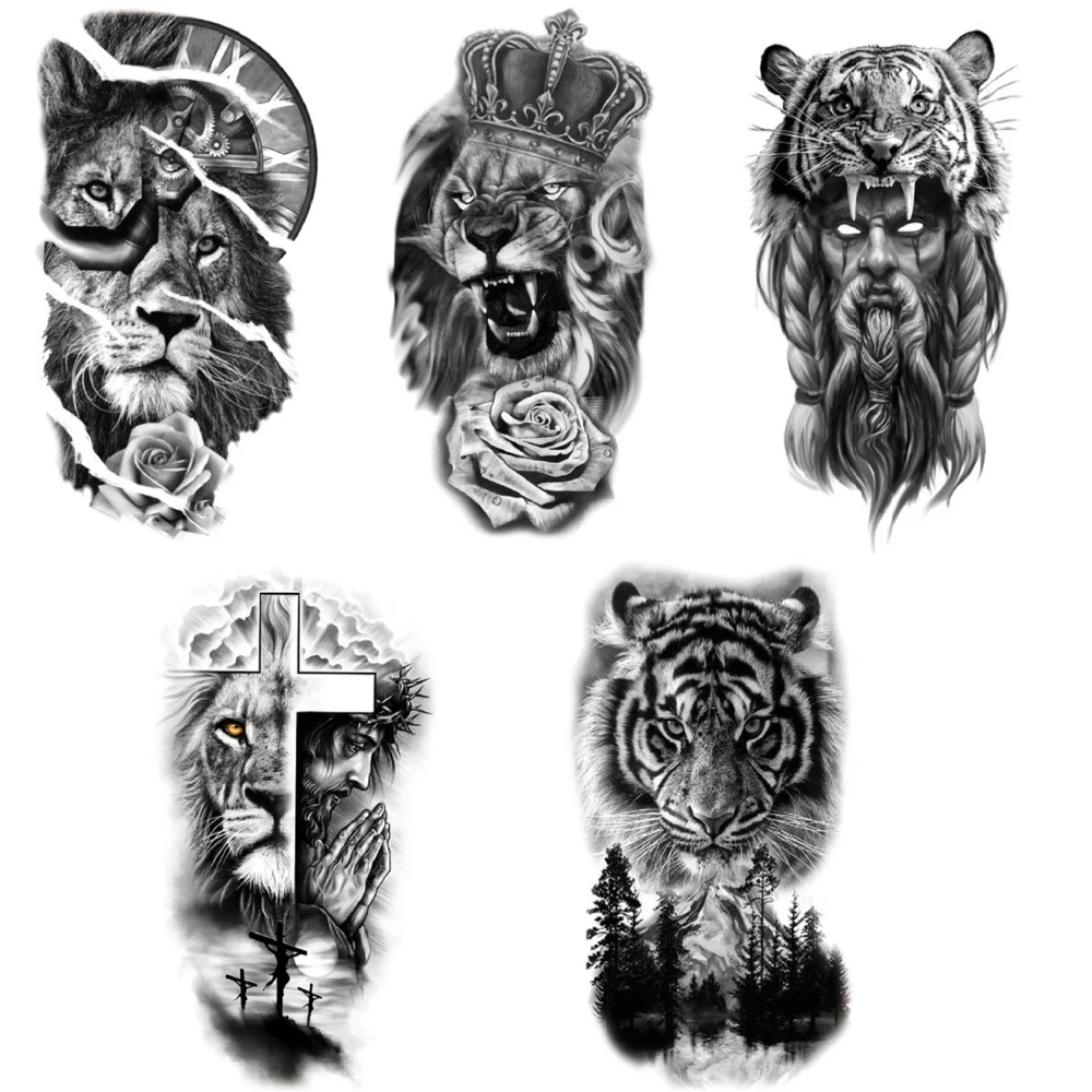 Waterproof Temporary Tattoo Sticker Forest Lion Tiger Bear Flash Tattoos Women Leopard Wolf Crown Body Art Arm Fake Tatoo Men