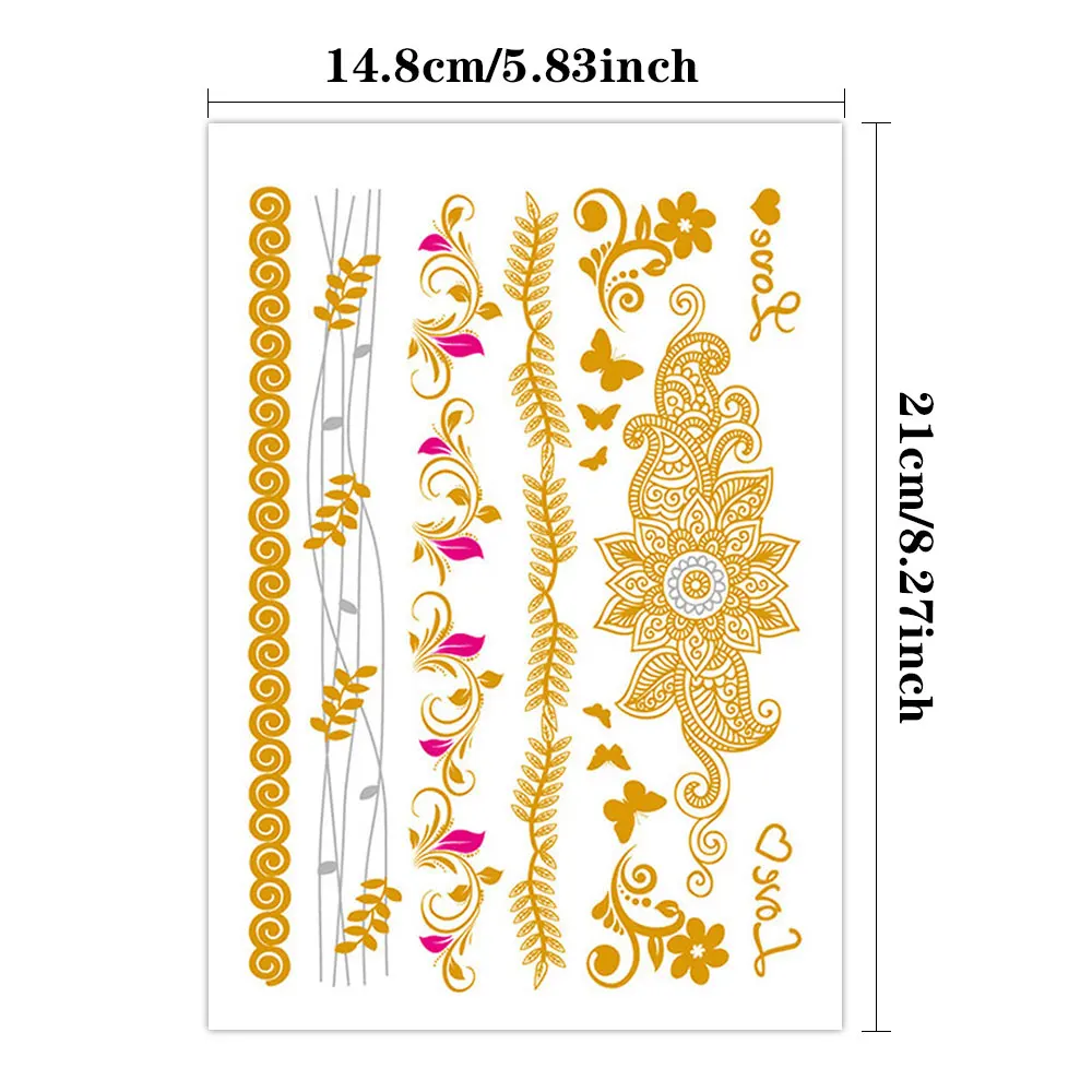 Waterproof Temporary Tattoo Sticker Hand Henna Flower Mandala Gold Silver Metallic Boho Lotus Totem Flash Tatoo Body Art Women