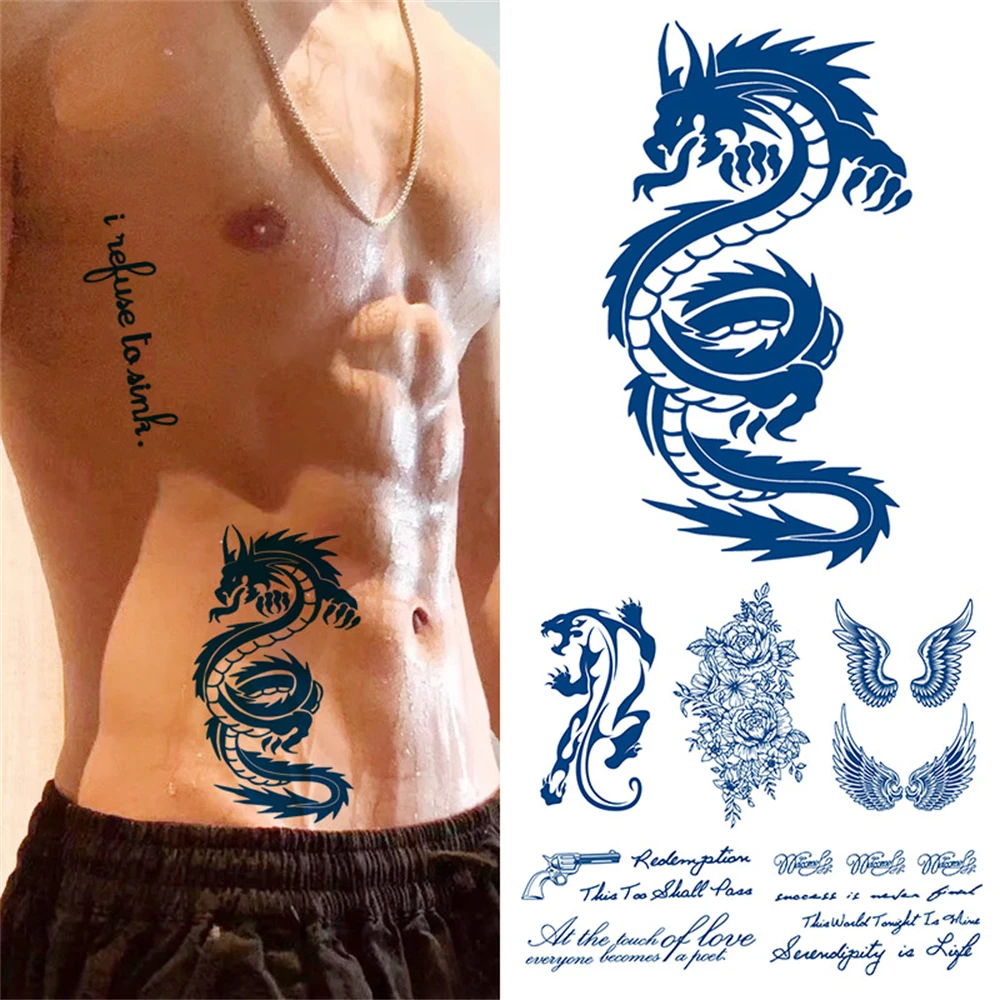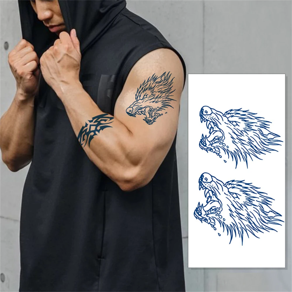 Waterproof Temporary Tattoos Juice Full Arm Fake Totem Tiger Dragon Tattoo Sticker Realistic Transfer Tattoos For Men Women Art